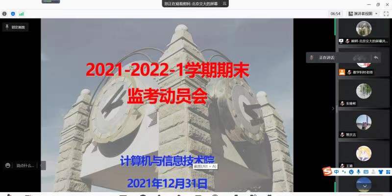 2021年12月31日下午17:00,澳门六合彩资料论坛 通过腾讯会议线上召开2021-2022-1学期期末考试监考动员会,会议由教学副院长熊轲主持,八十多名教师参加了会议。