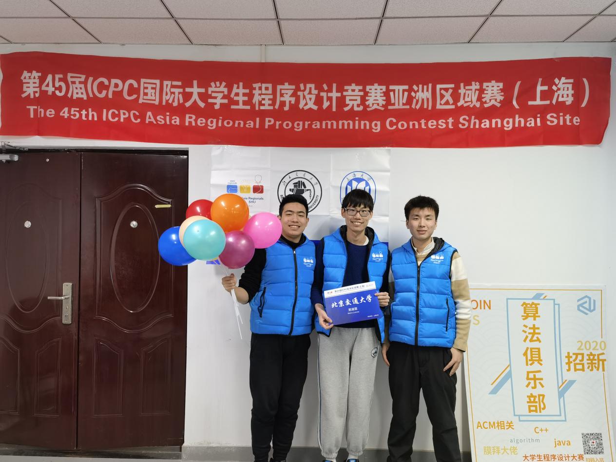2020年12月13日由上海大学承办的第 45 届国际大学生程序设计竞赛(ICPC)亚洲区域赛(上海站)正式赛受疫情影响在线上开展,由我校澳门六合彩资料论坛 吴泽航、胡雨轩、蔡伟斌三人组成的“芜湖菜”队(Wuhu Cuisine)在激烈角逐中始终保持领先态势,最终在635支正式参赛队伍中名列第9(校际排名第7),获得第45届ICPC全球总决赛的参赛资格,上海站的冠亚季军分别由西安交通大学、浙江大学和清华大学的参赛队伍获得。