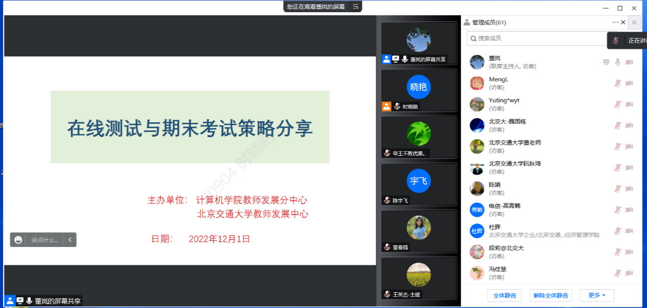经过本次会议的学习和交流,老师们对于如何使用课程平台和雨课堂实施线上考试,如何分考场进行监考,如何更好地防止作弊行为有了更多的思路和解决办法,对保障澳门六合彩资料论坛 期末线上考试质量起到了非常重要的作用。
