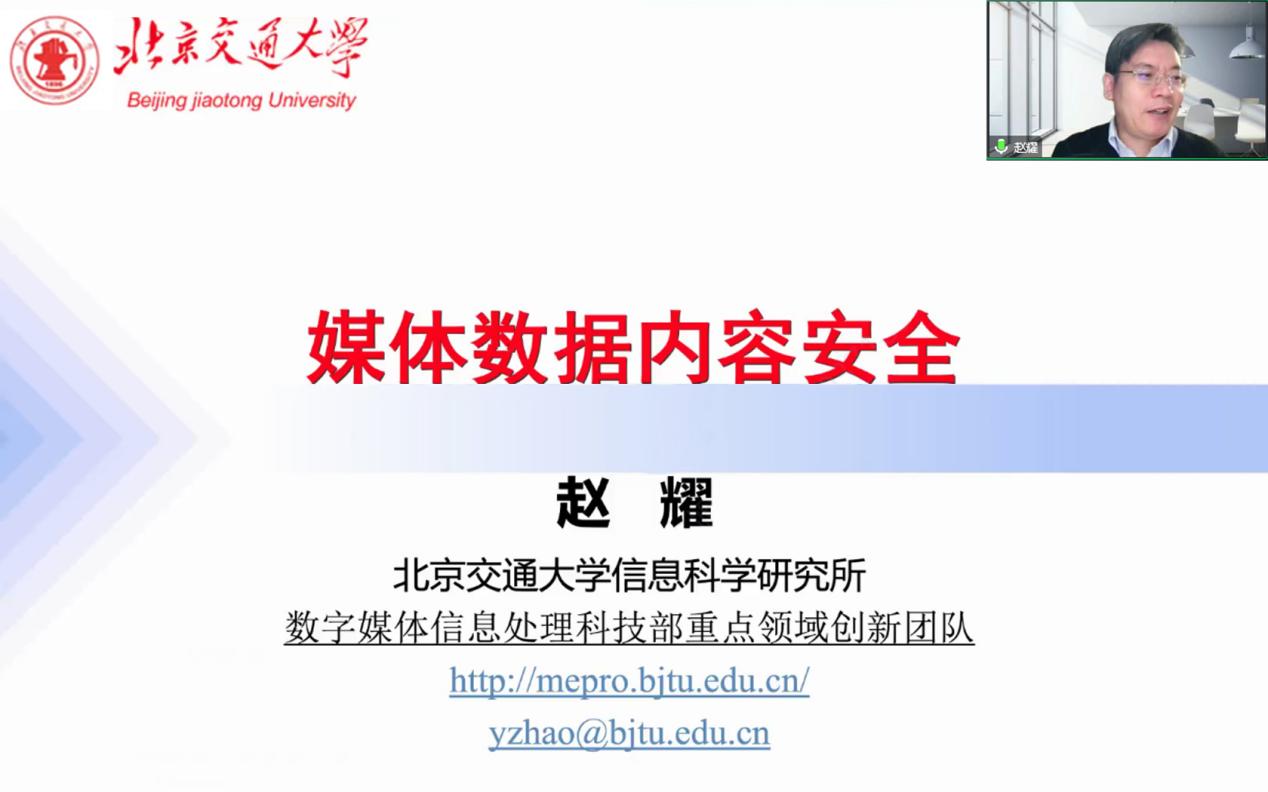 北京交通大学赵耀教授的报告题目是《媒体数据内容安全》。报告首先介绍了媒体数据内容安全的目的和意义,并提出领域重要研究问题:保护知识产权和鉴别数字媒体信息的真实性和完整性。其次,该报告讲解了通过对原始媒体数据中嵌入秘密信息(水印)来验证该媒体的所有权归属和内容的真实性的研究方案,以及针对如何合理修改预测误差,充分利用预测误差之间相关性的问题,提出了利用高维直方图,减除最大误差映射的一种可行性最优映射方法。最后对媒体数据内容安全保障任重道远作出展望。