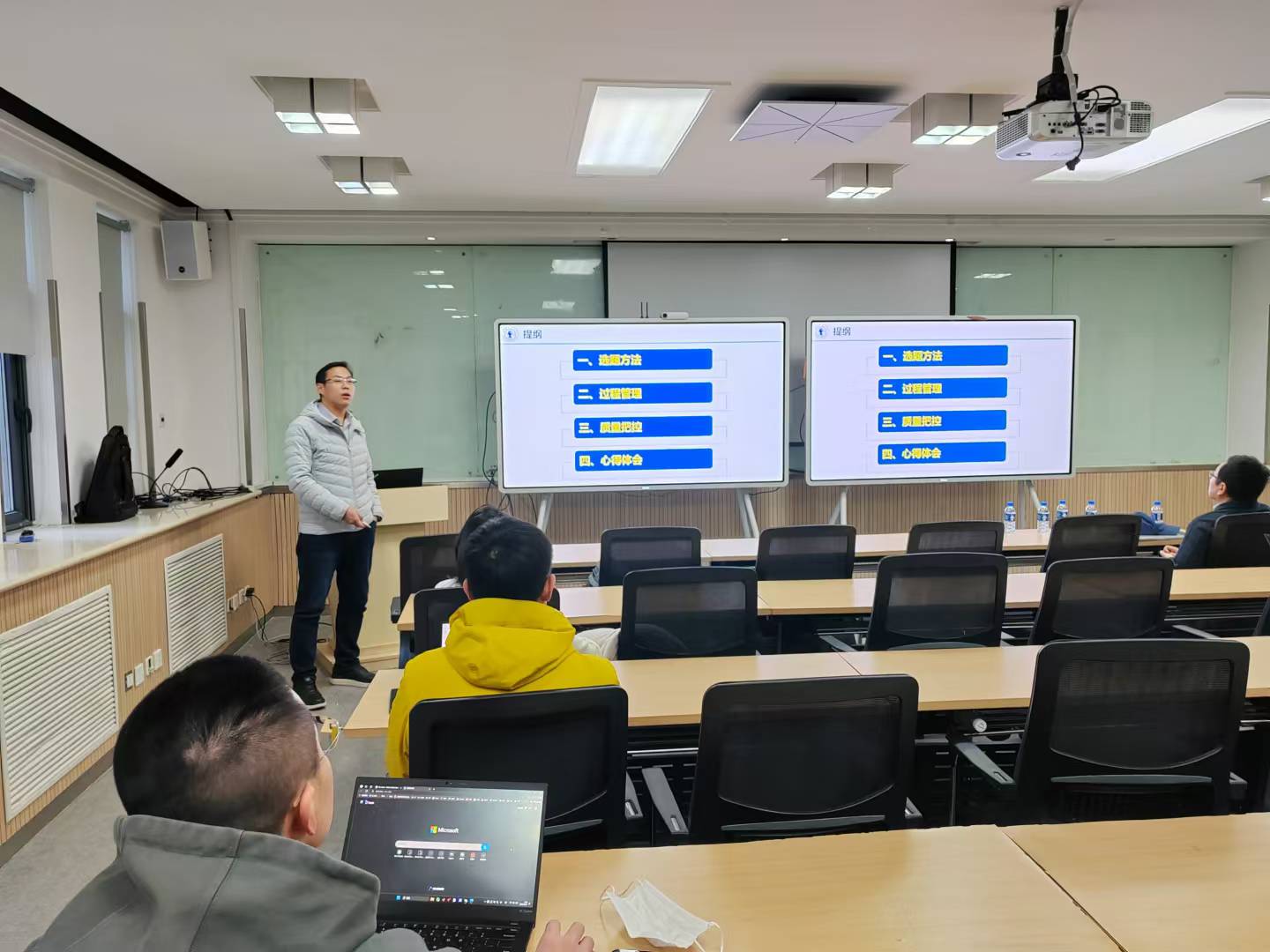万怀宇老师从团队指导的角度,从选题方法、过程管理、质量把控的角度,介绍了面向保研、工作、考研等多种不同类型学生的毕业论文(设计)指导经验,包括充分调动团队老师和研究生的积极性、共同做好指导,另外还分享了自己多年指导毕业论文的心得体会。