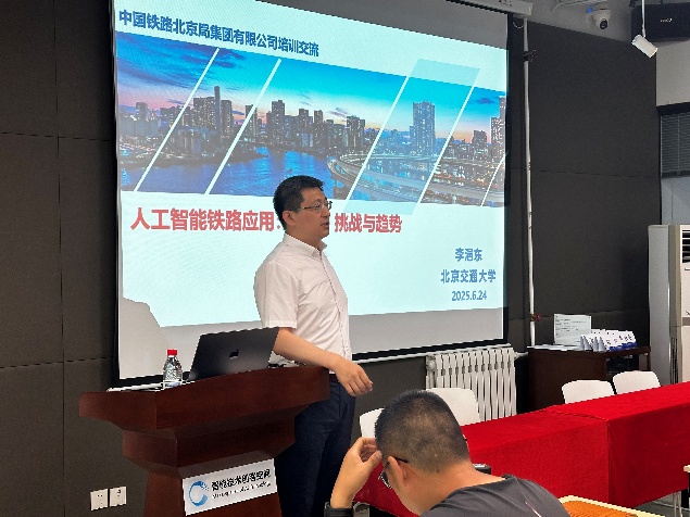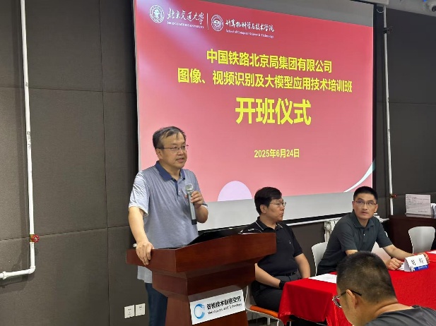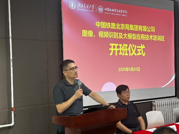 2025年6月24日,北京交通大学-中国铁路北京局集团有限公司图像、视频识别及大模型应用技术培训班顺利开班,本次培训由澳门六合彩资料论坛-澳门六合彩官网资料 主办,出席此次开班仪式的有中国铁路北京局科信部刘辉副主任、臧钊科长,澳门六合彩资料论坛-澳门六合彩官网资料 贾卓生书记、景丽萍副院长、刘真教授等。