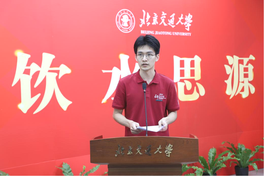 硕士研究生林瀚峰代表新生发言。他对老师们的辛勤付出和悉心关怀表示由衷的感谢。他说同学们从全国各地汇聚到北交大唐山研究院,是追溯交大根源,实现个人梦想的崭新篇章。唐山研究院地理位置优越,并为我们提供了宽敞的科研工位、免费且宽敞明亮、设备齐全的宿舍,和环境优美且安全的校园环境和服务体贴周到的服务。我们一定会勤学苦练,用自己的学术成果和优异的成绩回报母校和唐山人民,立志成为有社会担当的新时代有志青年。